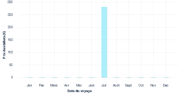 Evolution des tarifs issue des historiques de prix relevés pour des vols Aller Retour Ajaccio - Brive La Gaillarde