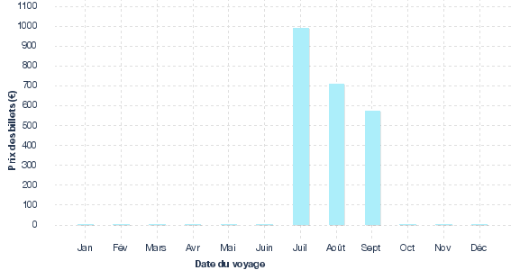 Evolution des tarifs issue des historiques de prix relevés pour des vols Aller Retour Amsterdam - San Francisco