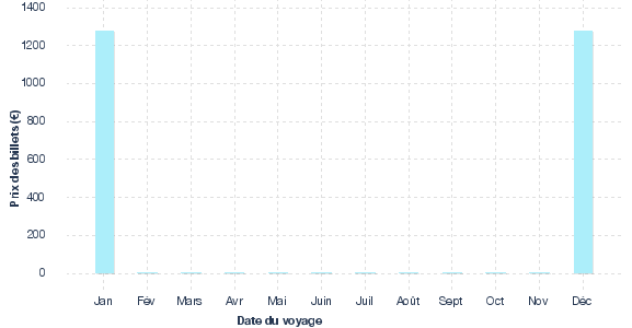 Evolution des tarifs issue des historiques de prix relevés pour des vols Aller Retour Barcelone - Chiang Mai