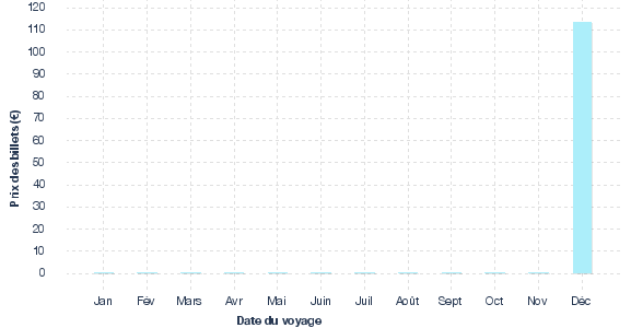 Meilleurs prix selon le mois issus des résultats de recherche pour des vols de Barcelone à destination de Londres au cours des 30 derniers jours sur algofly.fr