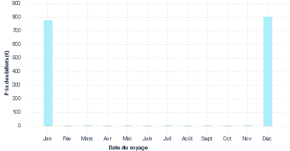 Meilleurs prix selon le mois issus des résultats de recherche pour des vols de Barcelone à destination de Praia au cours des 30 derniers jours sur algofly.fr