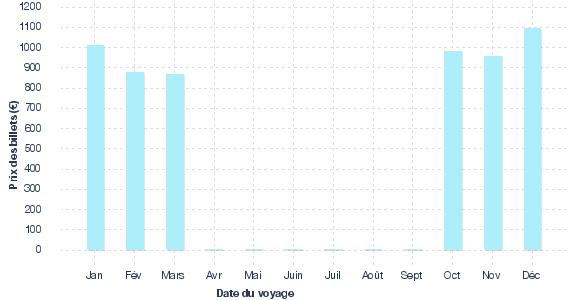 Meilleurs prix selon le mois issus des résultats de recherche pour des vols de Barcelone à destination de Santiago au cours des 30 derniers jours sur algofly.fr