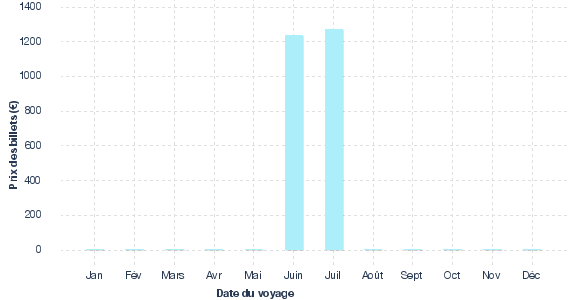 Evolution des tarifs issue des historiques de prix relevés pour des vols Aller Retour Biarritz - Denpasar Bali