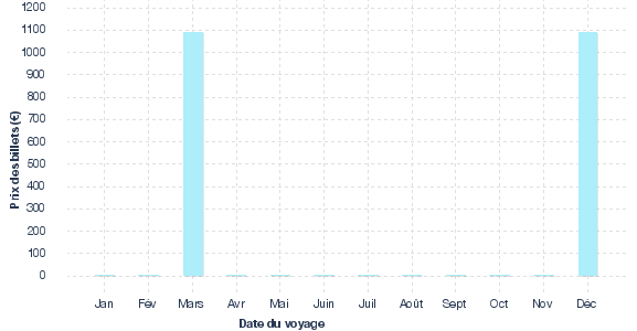 Evolution des tarifs issue des historiques de prix relevés pour des vols Aller Retour Bilbao - Brisbane