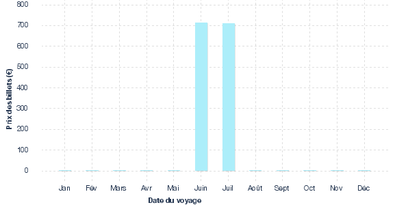 Meilleurs prix selon le mois issus des résultats de recherche pour des vols de Bilbao à destination de Dakar au cours des 30 derniers jours sur algofly.fr