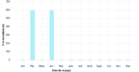Meilleurs prix selon le mois issus des résultats de recherche pour des vols de Bordeaux à destination de Conakry au cours des 30 derniers jours sur algofly.fr