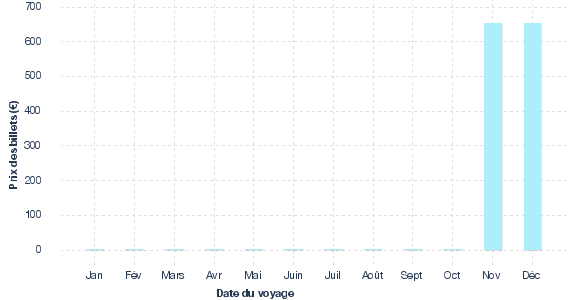 Meilleurs prix selon le mois issus des résultats de recherche pour des vols de Bordeaux à destination de Natal au cours des 30 derniers jours sur algofly.fr