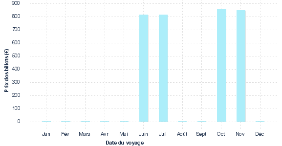 Evolution des tarifs issue des historiques de prix relevés pour des vols Aller Retour Bordeaux - San Diego