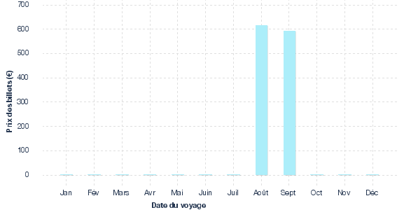 Meilleurs prix selon le mois issus des résultats de recherche pour des vols de Brest à destination de San Francisco au cours des 30 derniers jours sur algofly.fr