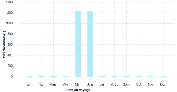 Evolution des tarifs issue des historiques de prix relevés pour des vols Aller Retour Bruxelles - Asuncion