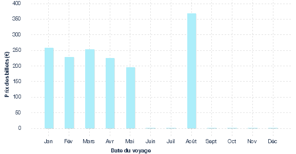 Meilleurs prix selon le mois issus des résultats de recherche pour des vols de Casablanca à destination de Milan au cours des 30 derniers jours sur algofly.fr