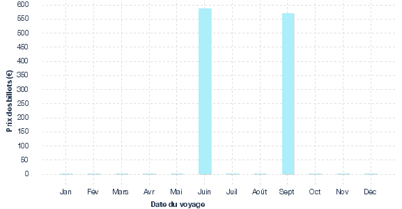 Evolution des tarifs issue des historiques de prix relevés pour des vols Aller Retour Genève - Winnipeg