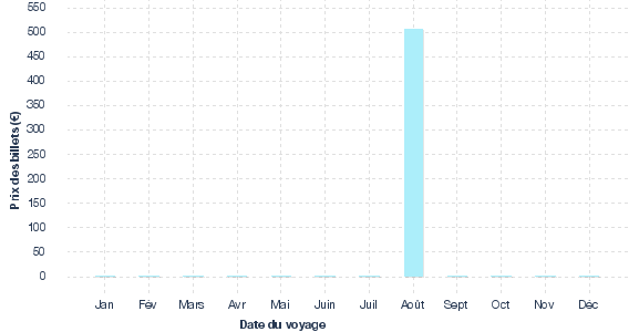 Evolution des tarifs issue des historiques de prix relevés pour des vols Aller Retour Lille - Rabat