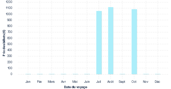 Evolution des tarifs issue des historiques de prix relevés pour des vols Aller Retour Lyon - Sacramento