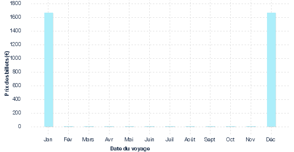 Evolution des tarifs issue des historiques de prix relevés pour des vols Aller Retour Madrid - Cordoba