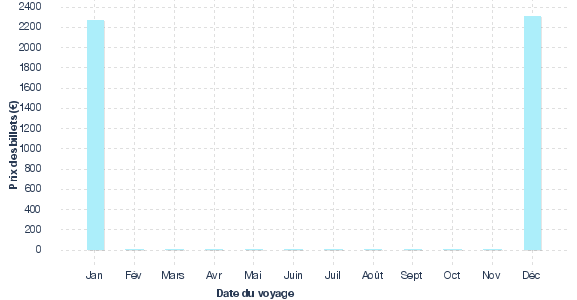 Meilleurs prix selon le mois issus des résultats de recherche pour des vols de Madrid à destination de Papeete au cours des 30 derniers jours sur algofly.fr