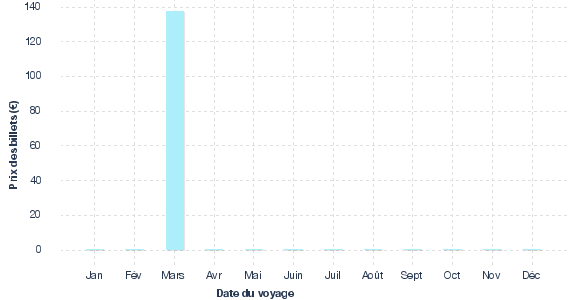Meilleurs prix selon le mois issus des résultats de recherche pour des vols de Mahé à destination de l'Ile Praslin au cours des 30 derniers jours sur algofly.fr