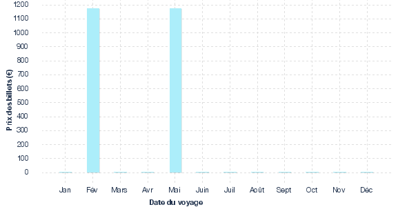 Meilleurs prix selon le mois issus des résultats de recherche pour des vols de Montpellier à destination de Santa Cruz au cours des 30 derniers jours sur algofly.fr