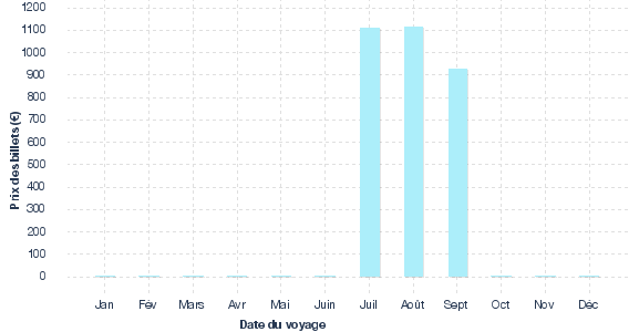 Meilleurs prix selon le mois issus des résultats de recherche pour des vols de Nantes à destination de Monterrey au cours des 30 derniers jours sur algofly.fr