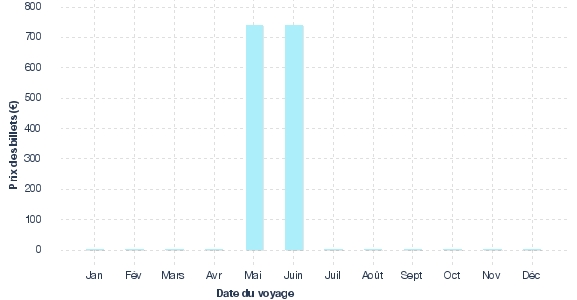 Meilleurs prix selon le mois issus des résultats de recherche pour des vols de Nantes à destination de Puerto Vallarta au cours des 30 derniers jours sur algofly.fr