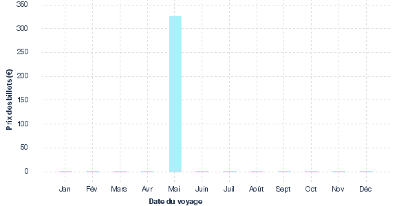 Meilleurs prix selon le mois issus des résultats de recherche pour des vols de Nice à destination de Dakhla au cours des 30 derniers jours sur algofly.fr