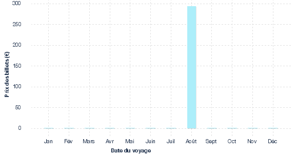 Evolution des tarifs issue des historiques de prix relevés pour des vols Aller Retour Nice - Dubrovnik