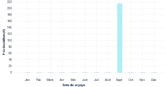 Evolution des tarifs issue des historiques de prix relevés pour des vols Aller Retour Nice - Zadar