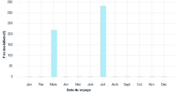 Evolution des tarifs issue des historiques de prix relevés pour des vols Aller Retour Nîmes - Dublin