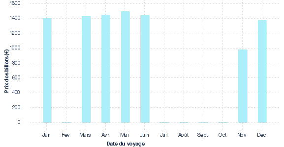 Meilleurs prix selon le mois issus des résultats de recherche pour des vols de Papeete à destination de Tokyo au cours des 30 derniers jours sur algofly.fr