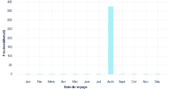 Evolution des tarifs issue des historiques de prix relevés pour des vols Aller Retour Paphos - Lyon
