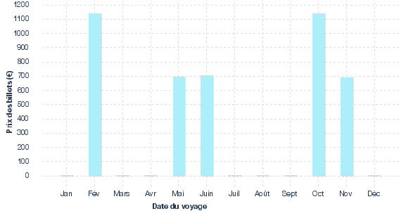 Meilleurs prix selon le mois issus des résultats de recherche pour des vols de Rennes à destination de Fort De France au cours des 30 derniers jours sur algofly.fr