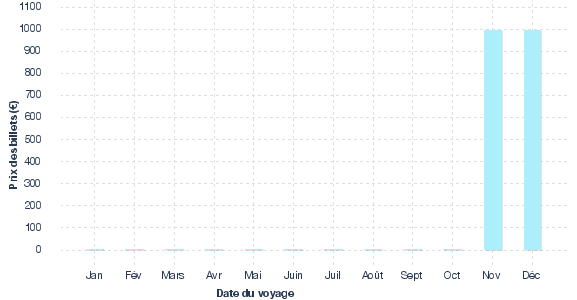 Meilleurs prix selon le mois issus des résultats de recherche pour des vols de Saint Sebastien à destination de Santiago au cours des 30 derniers jours sur algofly.fr