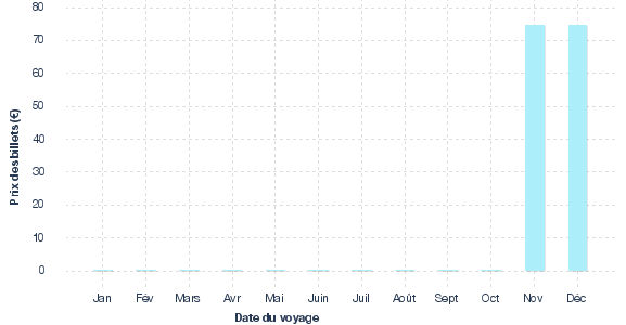 Evolution des tarifs issue des historiques de prix relevés pour des vols Aller Retour Santiago - Punta Arenas