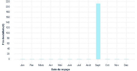 Evolution des tarifs issue des historiques de prix relevés pour des vols Aller Retour Strasbourg - Olbia