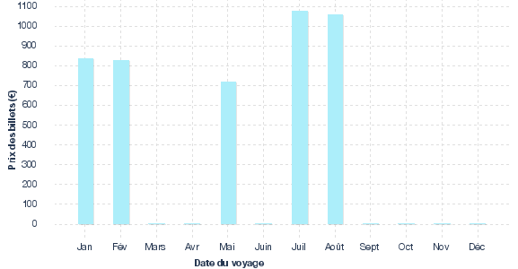 Evolution des tarifs issue des historiques de prix relevés pour des vols Aller Retour Strasbourg - Pointe à Pitre