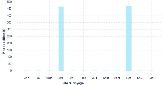 Evolution des tarifs issue des historiques de prix relevés pour des vols Aller Retour Toulouse - Bakou