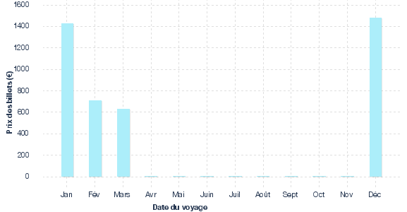 Meilleurs prix selon le mois issus des résultats de recherche pour des vols de Toulouse à destination de Cotonou au cours des 30 derniers jours sur algofly.fr
